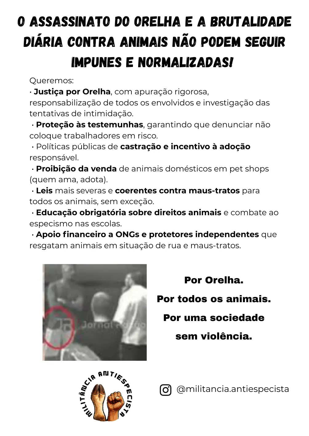 Por Orelha, por todos os animais, por uma sociedade sem violência.