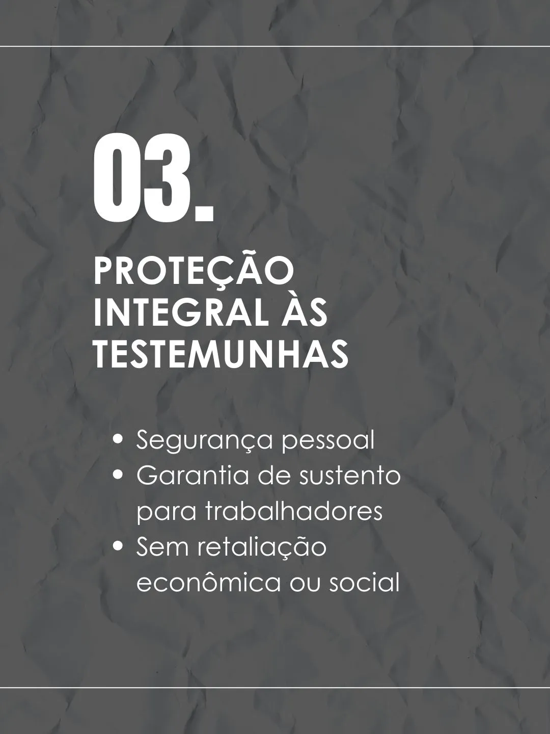 3. Garantia da proteção às testemunhas com a preservação de seus sustentos no caso de serem trabalhadores.