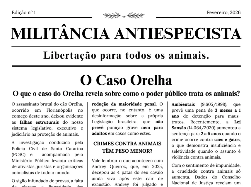 Portanto, lhe convidamos a se juntar nesta causa com a gente, a conhecer o movimento, nossas lutas e o veganismo como movimento pela libertação animal!