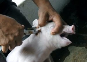 Enquanto na natureza os leitões são desmamados após cerca de treze semanas, nas granjas industriais o desmame ocorre por volta de dez dias após o nascimento. Privados do contato com a mãe, acabam desenvolvendo um distúrbio conhecido como “vício de sucção”, que os leva a sugar o umbigo, a vulva, as pregas das virilhas e as orelhas de outros animais, além de causar canibalismo e a ingestão de fezes e urina.